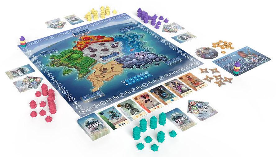 プレイヤーはエスノスの指導者となり、12の氏族から協力者カードを集めて部隊(パーティー)を結成し、対応する色の領土(6地域)に支配マーカーを配置して影響力を拡大します。